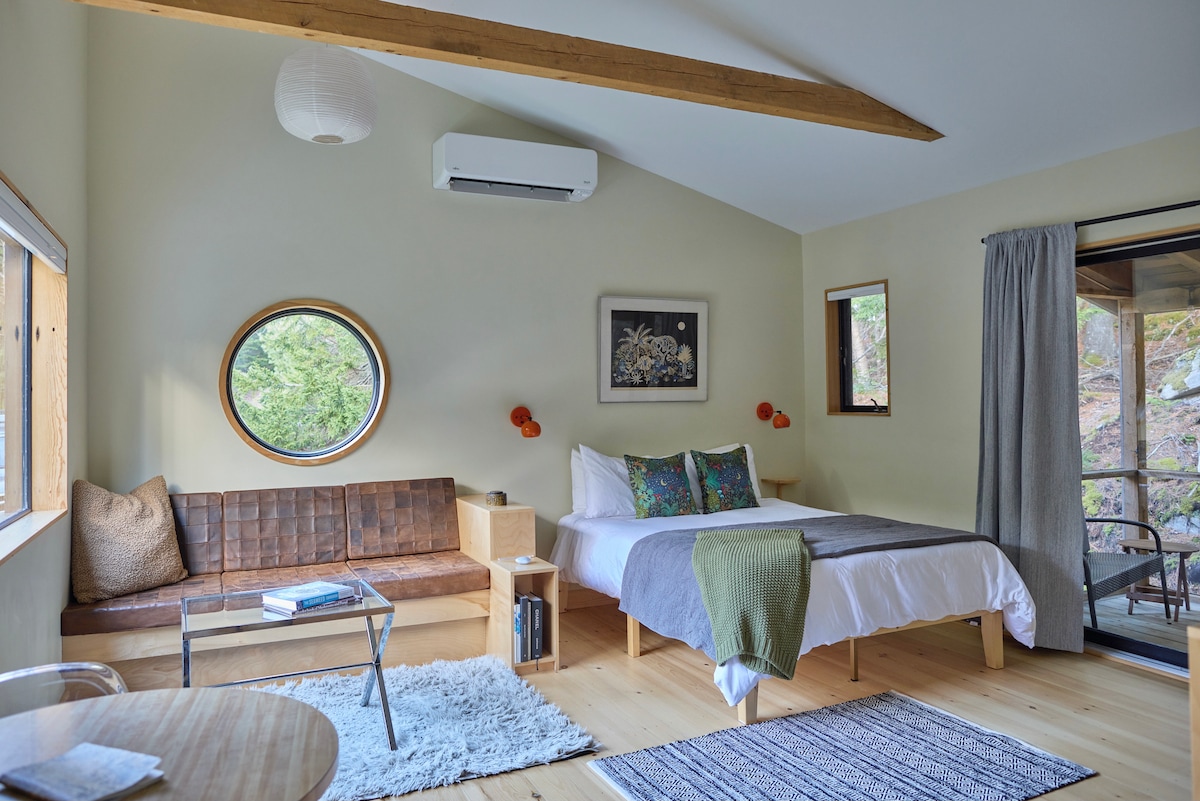 Unwind at Spruce Studio on 8 wooded acres with a pond. *Minutes to Reid State Park Beach & 5 Island🦞 * Fire Pit w/S'mores * 100% Cotton sheets/towels * Rain Shower & Heated Bathroom Floor * AC/Heat & Automatic Kohler Generator * SmartTV & Record Player w/Vinyl * Fast Broadband Wifi *Spruce Studio is one of two cabins on our 8 acres right down the road from one of the best beaches in Maine! The cabins are 150ft. apart and separated by a privacy screen and natural landscaping.