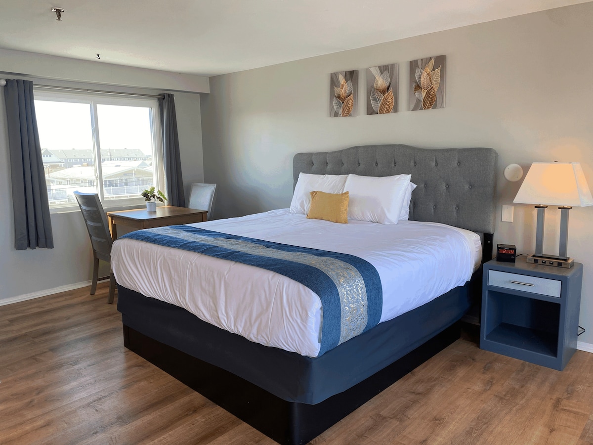 Located 300 feet from the sand at Crescent Beach. Our economy rooms feature 1 queen bed, wifi, cable, a refrigerator, microwave, air conditioning and coffee maker. Each unit has their own porch with outdoor seating. 1 free parking spot comes with the room. This is a yard view room and does not have an ocean view.