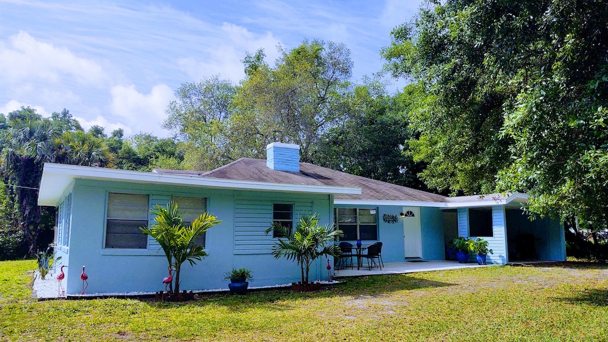 Welcome to the Space Coast. Just a few miles from this chunk of paradise is the beach, Kennedy Space Center (KSC) and the KSC visitor center. You can watch a rocket launch from the back yard, beach, or many other locations. You have your own entrance and parking spot and our freshly updated guesthouse with king bed waiting for you. We offer you a spot at the backyard key west style covered bar or pool area where you can soak in the sun, watch a launch, barbecue, or just chill. Fully equipped.