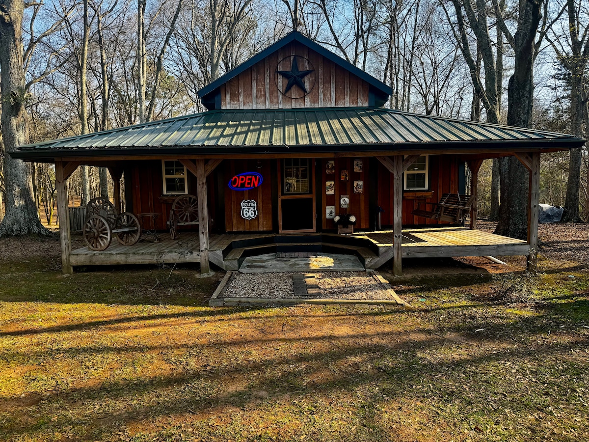 Take it easy at this unique and tranquil getaway. Centrally located between Carrollton and Villa Rica, this secluded cabin will have you feeling like you are in the North GA mountains. Enjoy a fresh cup of coffee on the covered porch overlooking the creek that runs in front of the cabin. Listen to the woods around you and if you are quiet enough, you may see the deer walking the property. You will feel like you are miles from civilization, but with the convenience of being close to town.
