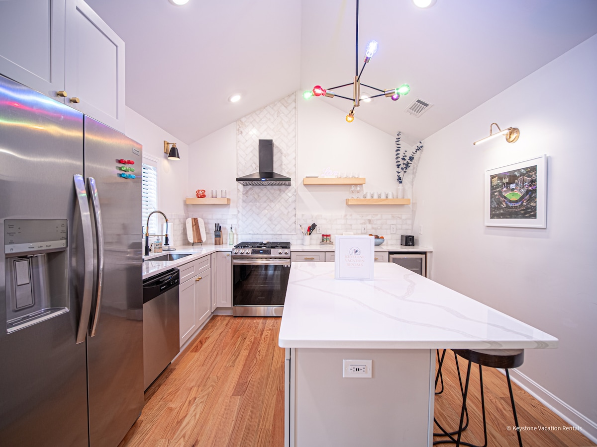 Discover the perfect blend of modern comfort and small-town charm at this bright 2-bedroom, 1-bath farmhouse-style home in Kennesaw. Featuring 2 cozy bedrooms with Smart TVs, it’s ideal for couples, solo travelers, or small families. Thoughtful amenities include a fully stocked kitchen, Wi-Fi, laundry, and a relaxing living space. Located right on Main Street, you’ll enjoy easy access to local hotspots! Whether for a weekend or extended stay, this home truly has it all!