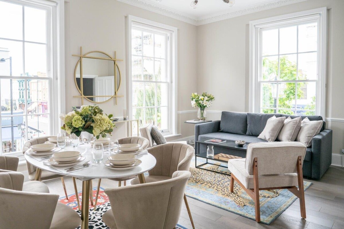 Home to trendy eateries, vintage shops, and pretty pastel-coloured houses, there's a reason Notting Hill is one of London's most beloved neighbourhoods. This cosy apartment is in the heart of the action, just a short walk from Kensington Palace, Hyde Park, and the lively Portobello Road. The interior is all about the sleek finishes, with botanical prints and greenery adding a bohemian touch. Plus you'll benefit from a private patio for a chilled coffee break.