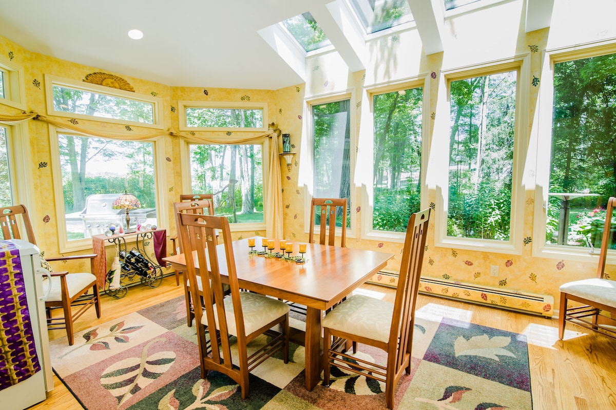 Poolside Casita is your private space among our bohemian vibes at this secret tucked away Labyrinth house. Unique space ideal for community -centric laid back guests. 2.8 miles from downtown Grand Rapids and 0.7 to gaslight village, and yet A WORLD AWAY. Meditate through the garden, walk our new Labyrinth. Our 4 acre estate, pool, sauna, pickle ball court, pond, dogs, eagles, heron, etc., is yours to enjoy and explore. Your eclectic hosts are here if you need anything