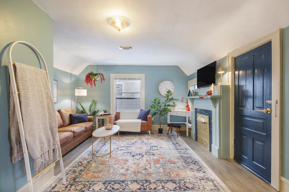 Private, cozy upper apartment. 2 bedrooms, 1 king & 1 queen bed. Pull out sleeper couch for 2 guests. Sleeps 6. Incredibly charming older home. Vintage styled. Lots of windows. Fully stocked kitchen. Coffee & WI-FI provided. TV’s with Roku / Netflix. Centrally located, 2 miles straight to DT GR, Vanandel Arena, Devos Place, GLC Live 20 Monroe, The Intersection & Acrisure Amphitheater. Uber/Lyft can get you downtown in minutes. Breweries & restaurants close in every direction. #420 friendly.