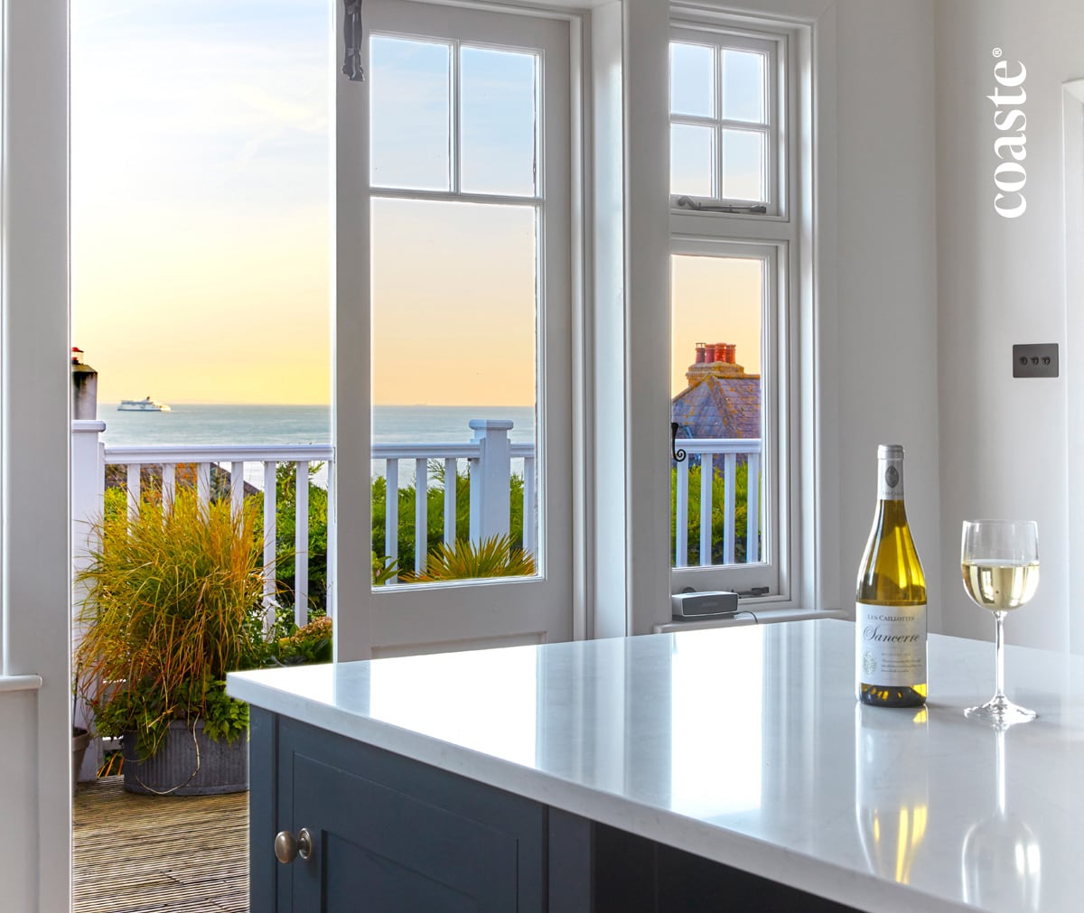 Prince of Wales Terrace by Coaste is for lovers of sunrises and sunsets who will adore this bright, spacious holiday home right on the beach in the fashionable seaside town of Deal. Prince of Wales Terrace is a unique seaside home with stunning views across the English Channel. The bright rooms offer a relaxed coastal vibe and have been designed with comfort and easy living in mind. Views across to France on a clear day create a canvas of dramatic hues and tones to capture your imagination.