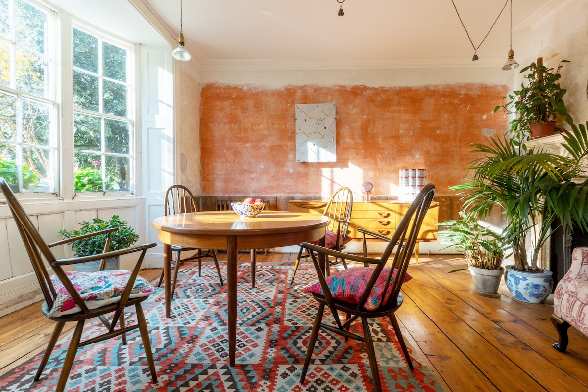 A large terraced house on a quiet green square, perfectly located 5 mins walk away from the beach and all Margate attractions. Prized by its guests for its comfortable beds, beautiful design, decor and plants, and excellent hosting. Built in 1835 on Hawley Square, the finest Georgian garden square in town, once the summer home to London's gentry, the house has been fully refurbished with a specialist 'light touch' conservation approach by its owner and inhabitant, architect Sam Causer.