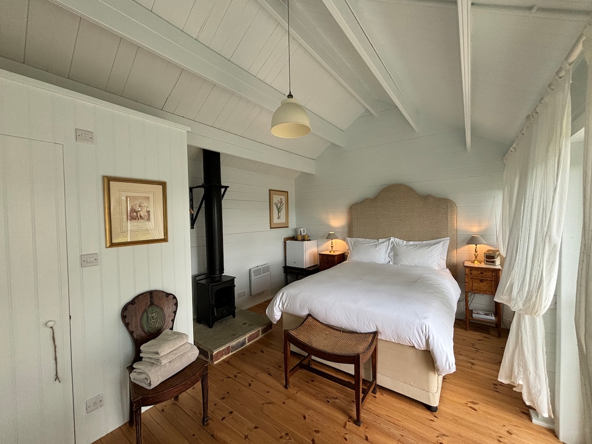 The Snuggery is a converted outbuilding that has been set up for a cosy stay with a wood burning stove and lots of snuggly wraps to cuddle up in. The open plan interior, high vaulted ceilings and natural oak flooring create an interior which is fun, light and airy. Walking enthusiasts will enjoy walks from the back door straight on to the North Downs Way and there is a bench by the front door fitted with a heated element, perfect for warming up your walking boots. Photos by Chloe-Rae