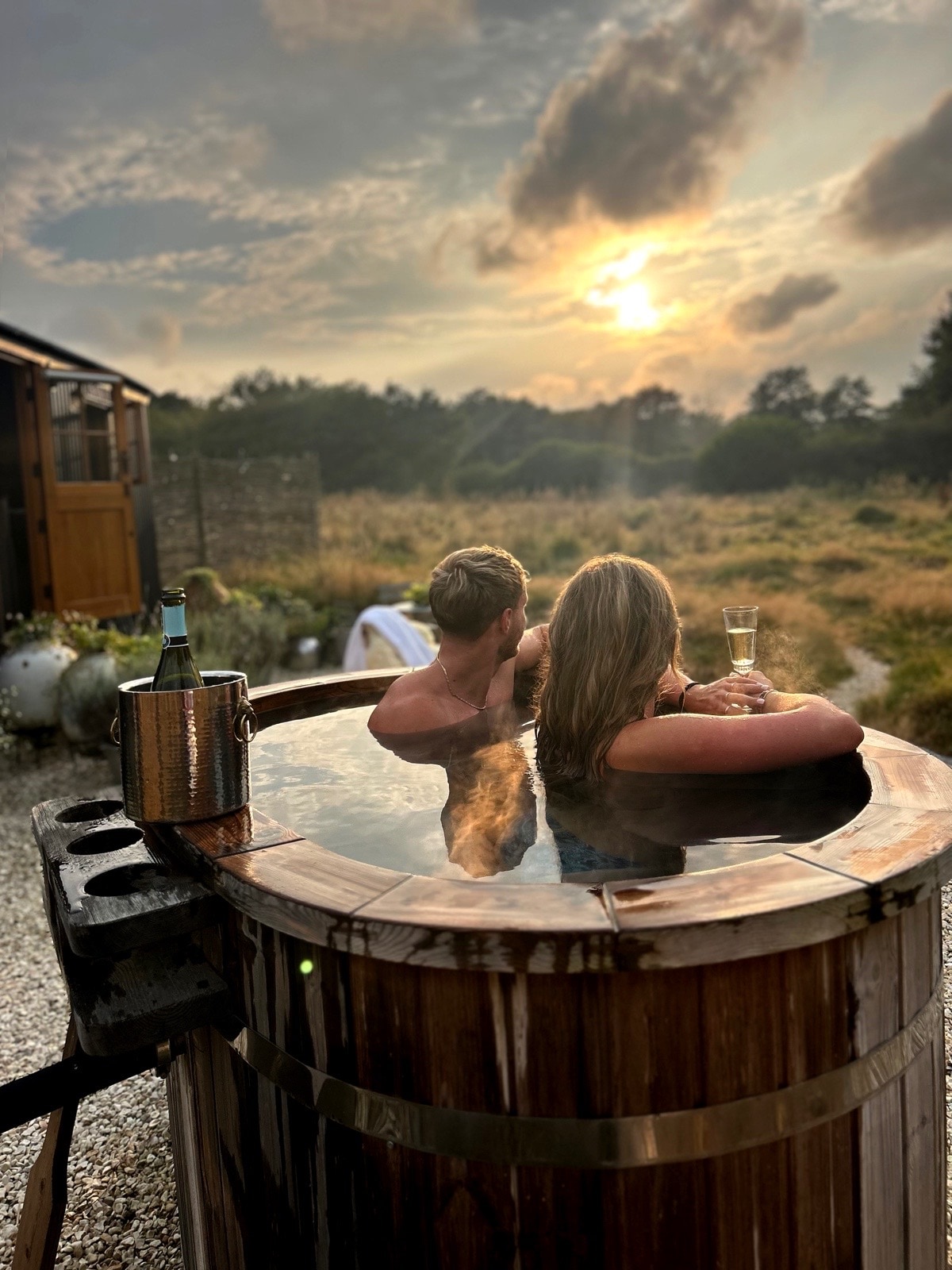 Escape to a romantic haven in a private meadow near Tunbridge Wells. This oversized 22’ Shepherd’s Hut blends indulgent luxury with countryside calm. • Scandinavian wood-fired hot tub • Designer interior with full sized double bed & rain-shower en-suite • Wi-Fi & wood-burning stove • Outdoor fire pit & star-filled skies • Uncork the complimentary Prosecco, sink into the tub and watch the sunset. • Just 50 minute train journey from London stations • Book your stay while dates are still open!