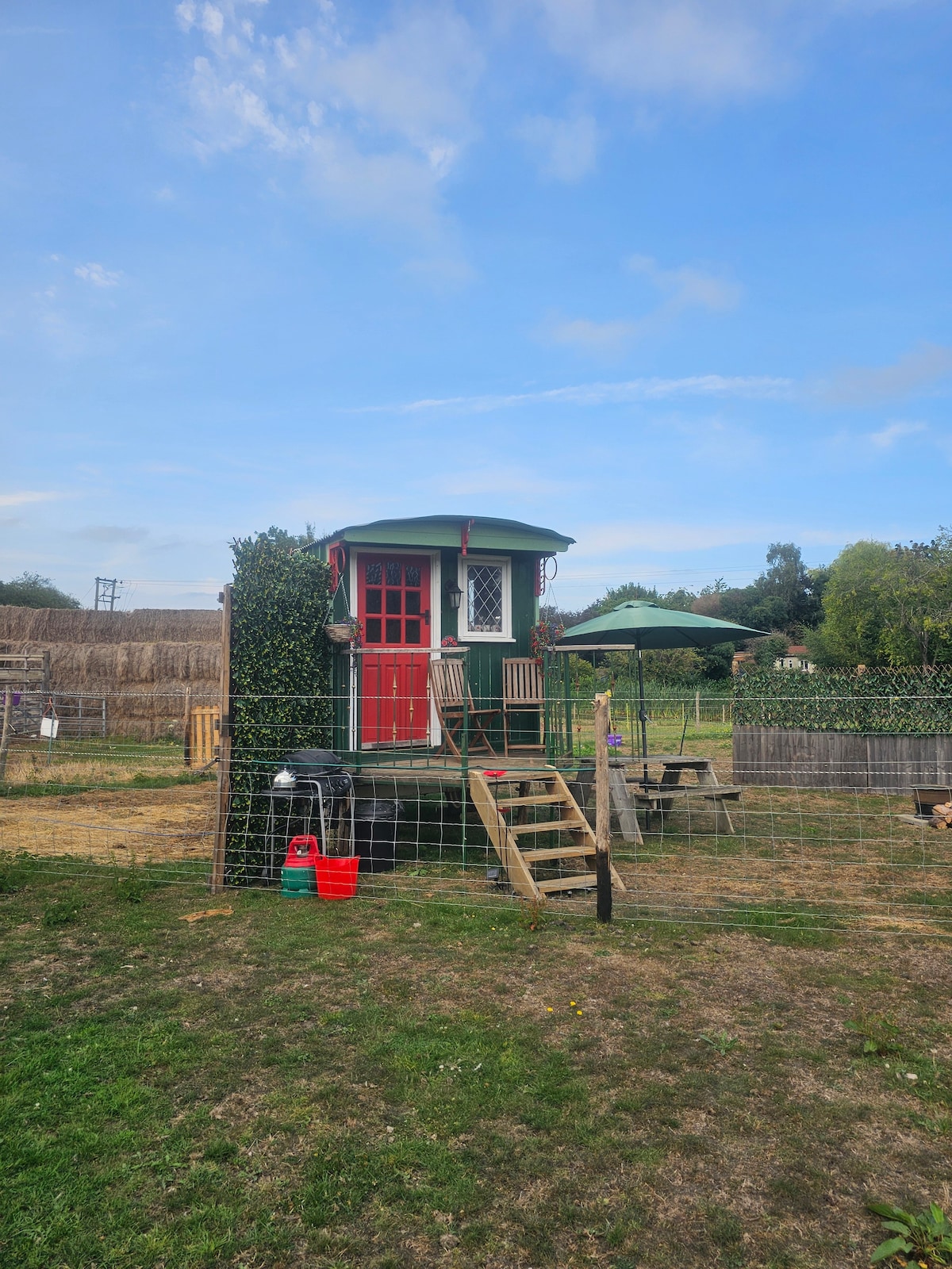 This memorable place is anything but ordinary. Enjoy a peaceful shepherds hut glamping stay in the Kent countryside, just off the B2027 near Hever and Penshurst. Step straight onto public footpaths for scenic walks and traditional country pubs. The private hut features a log burner, fire pit/BBQ (logs provided) and a private hot shower. Chickens and bees nearby — very friendly! Jessops farm Studios runs art workshops, google: weekendarting