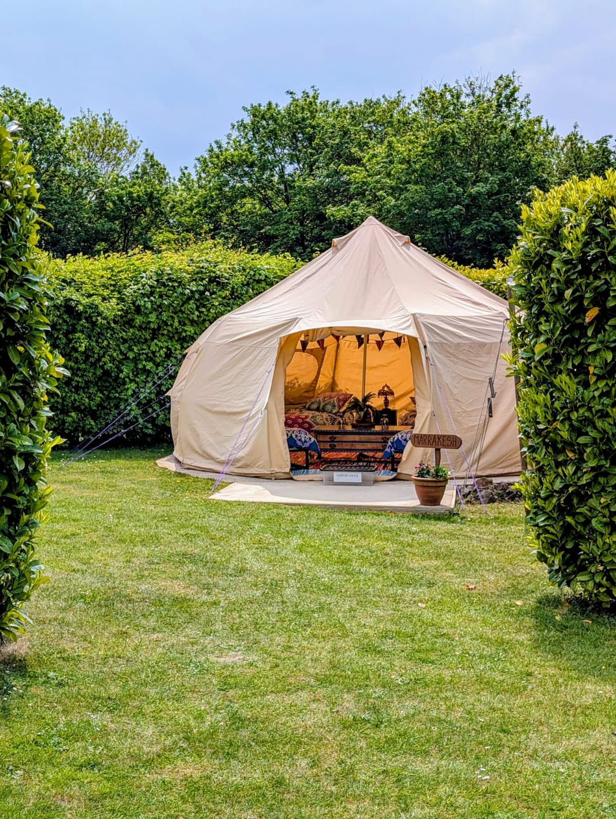 Get all of the joy of camping without the hassle. Turn up to your 6m bell tent in place and fully furnished with cooking facilities and a clean shower room. Enjoy the peace of the countryside and explore nearby clowes woods and the crab and winkle way or take a stroll into beautiful Whitstable. If you're bringing children then there is a beautiful stream for them to dip their toes in and endless beautiful countryside to explore.