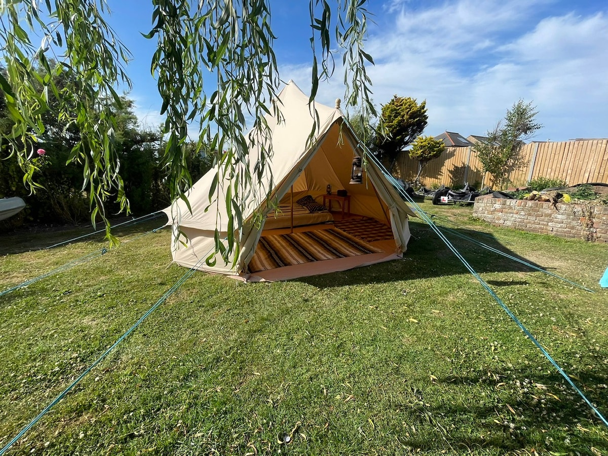 Get all of the joy of camping without the hassle. Turn up to your 6m bell tent in place and fully furnished with cooking facilities and a clean shower room. Enjoy the peace of the countryside and explore nearby clowes woods and the crab and winkle way or take a stroll into beautiful Whitstable. If you're bringing children then there is a beautiful stream for them to dip their toes in and endless beautiful countryside to explore.