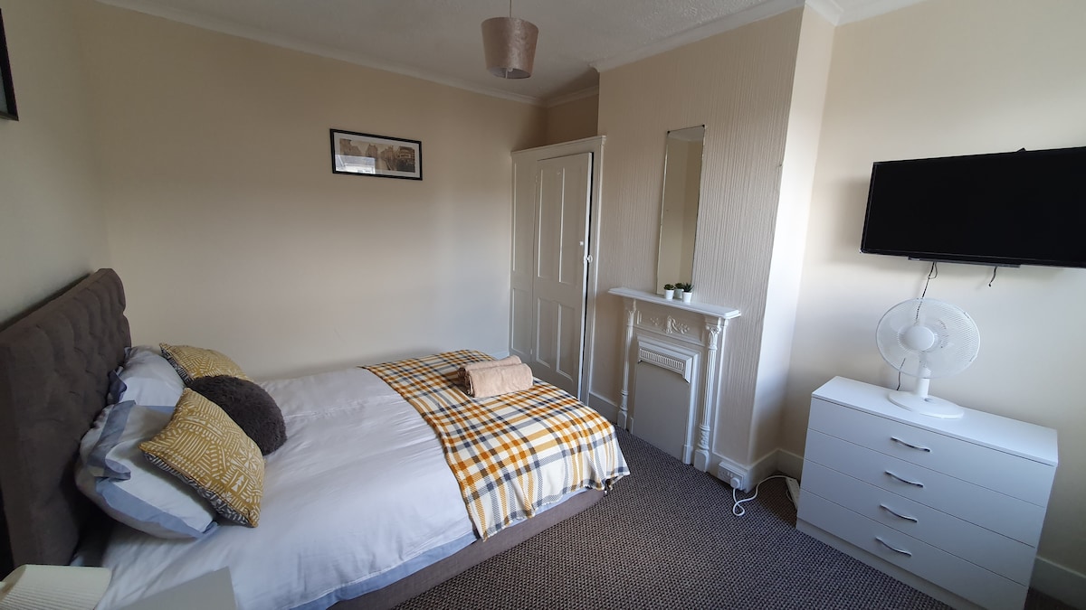 Spacious pet-friendly / accessible family holiday home. Primrose is a delightful end of terrace cottage with large and airy rooms. Sleeping up to 5 in a master bedroom with a superking size bed (or 2 singles) and a further triple room with a small double and 2 single beds. Luxury 200 thread count cotton bedlinen, and fluffy white towels are provided. Large family wet room. Centrally heated and double glazed. Free wifi access, private garden space and parking a few steps away.