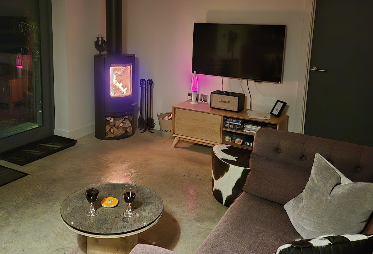 Welcome to our "Rabbit Hole", aptly named as you will discover on your visit to us; just peep out of the windows! Spacious but intimate, we hope that we got your holiday home right. Some of the stuff we thought of, a super king bed, so you can stretch out like starfish. Love music, connect and play your sounds on the Samsung speaker. 65" television to watch a Netflix epic? Open the window in the bedroom, fill the big bath tub and immerse yourself in the night sky with a glass of bubbles