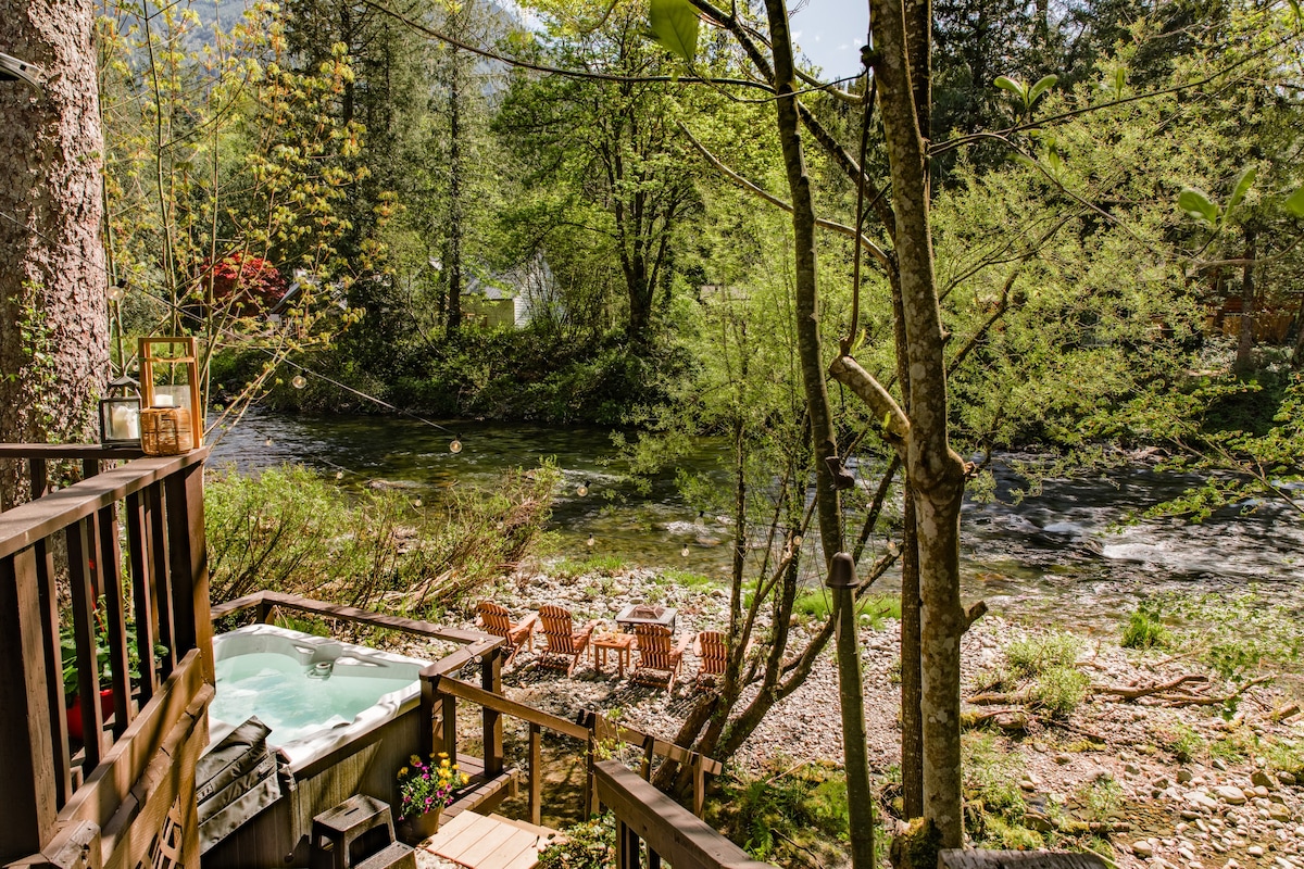 僻静的 A 字型房屋,带热水浴缸 • 森林和溪流