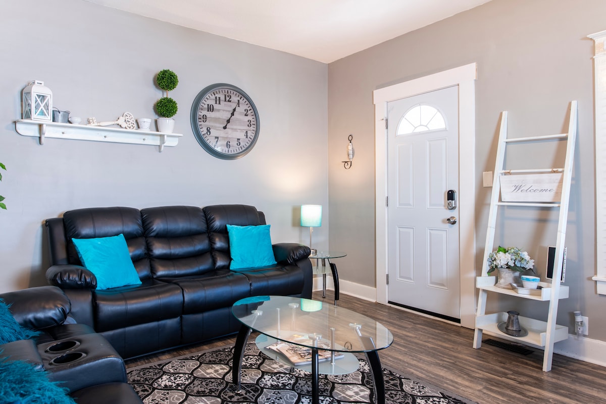 Adorable, recently remodeled home only 3 blocks from Churchill Downs and only minutes from the University of Louisville and Cardinal Stadium, Kentucky Expo Center, Kentucky Kingdom and 3 miles from Downtown. It's also just an Uber away from the Bourbon distilleries! Our home has 2 comfortable Bedrooms with new mattresses, that sleeps 4. Our couch is comfortable enough to sleep a 5th guest. Private Parking in Driveway. 50% of our home's electric is sourced from eco-friendly, renewable energy .