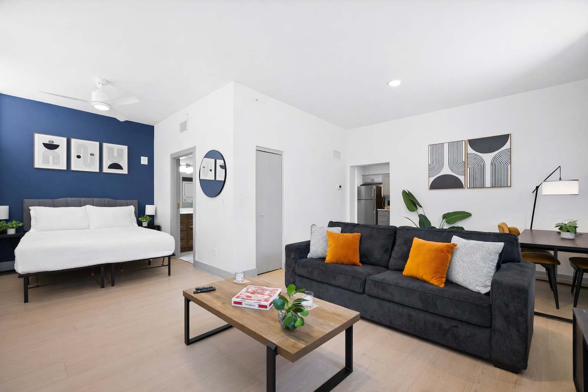 Live the best of Louisville in this sleek 1‑bed, 1‑bath downtown retreat! Perfect for couples, families, or friends, it features a cozy king bed, 2 rollaways, a fully stocked kitchen, and a bright living area. Enjoy morning coffee or evening drinks on your private balcony, stroll to nearby restaurants and bars, then relax by the pool or hot tub, play a round in the golf simulator, or unwind with a game of pool. Your launchpad for adventure—or a quiet, stylish escape when it’s time to rest!