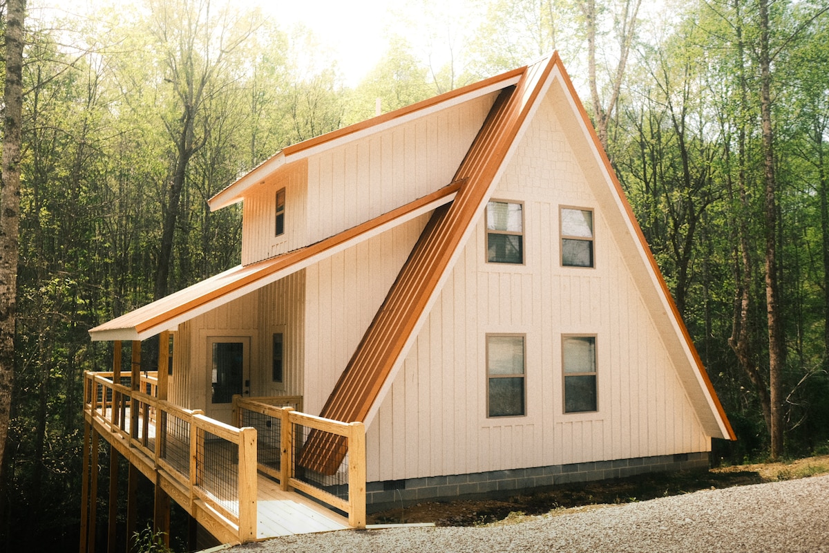 Escape to an A-Frame retreat in KY, where valley views and thoughtful comforts invite you to slow down and create meaningful memories. ✓ Soak in the hot tub under the stars ✓ Relax in the infrared sauna + private gym ✓ Gather around the fire pit, pool table, and ping pong ✓ Enjoy the stocked fishing pond + pedal boat ✓ Great for couples, families, and small groups Sleeps 7 comfortably, space for 8 upon approval. No TV by design—for slowing down, reconnecting, and enjoying nature.