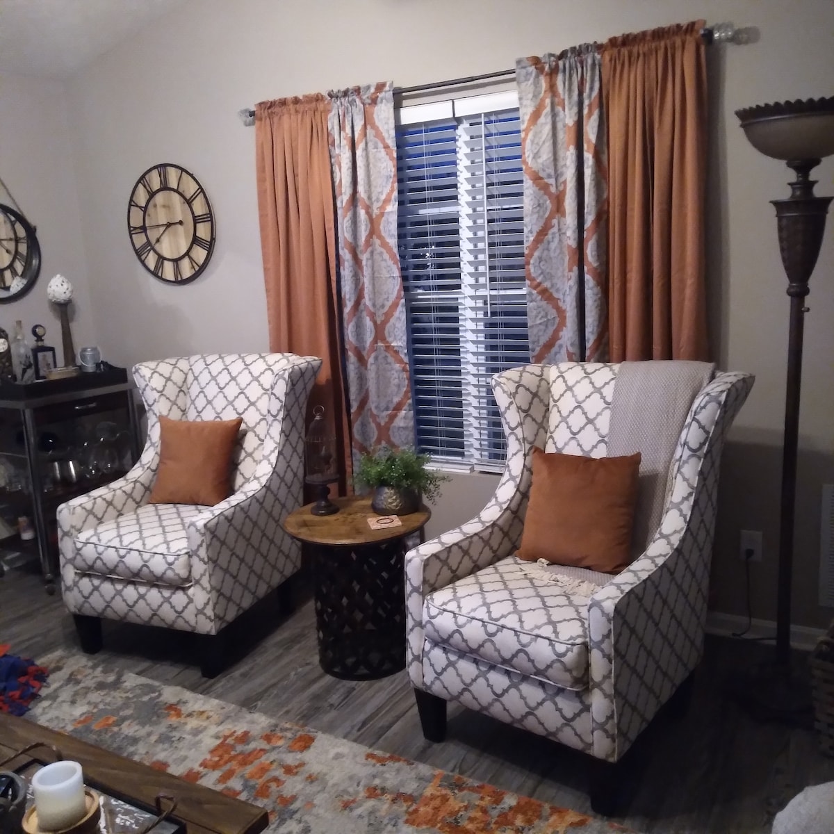 You'll experience all the comforts of home. A level entrance and easy access to every room. There is a walk-in shower located in the master bath, helpful for anyone with limited mobility. Bedrooms are separated, which allow privacy. Washer and dryer for your laundry needs, large kitchen fully equipped. A private, covered outdoor space provided with a grill and propane heat that allows extra room for dining. Minutes to all attractions. 1m music festival 15m Blue Oval 20m Fort Knox 8 m Ball Park