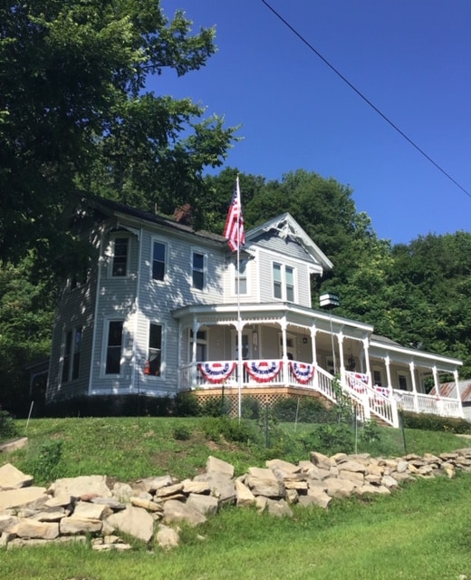 The America Room is named after America Dickinson, the sister of Thomas Childs Dickinson who first bought the house. A cozy retreat, we've decorated the America Room in patriotic red, white, and blue, along with some period antiques. The handmade heirloom quilt graces a queen-size bed. You have your own en suite private bathroom with a walk-in shower.   The full country breakfast is a different experience every day, from sausage gravy and biscuits, to Huevos Rancheros.