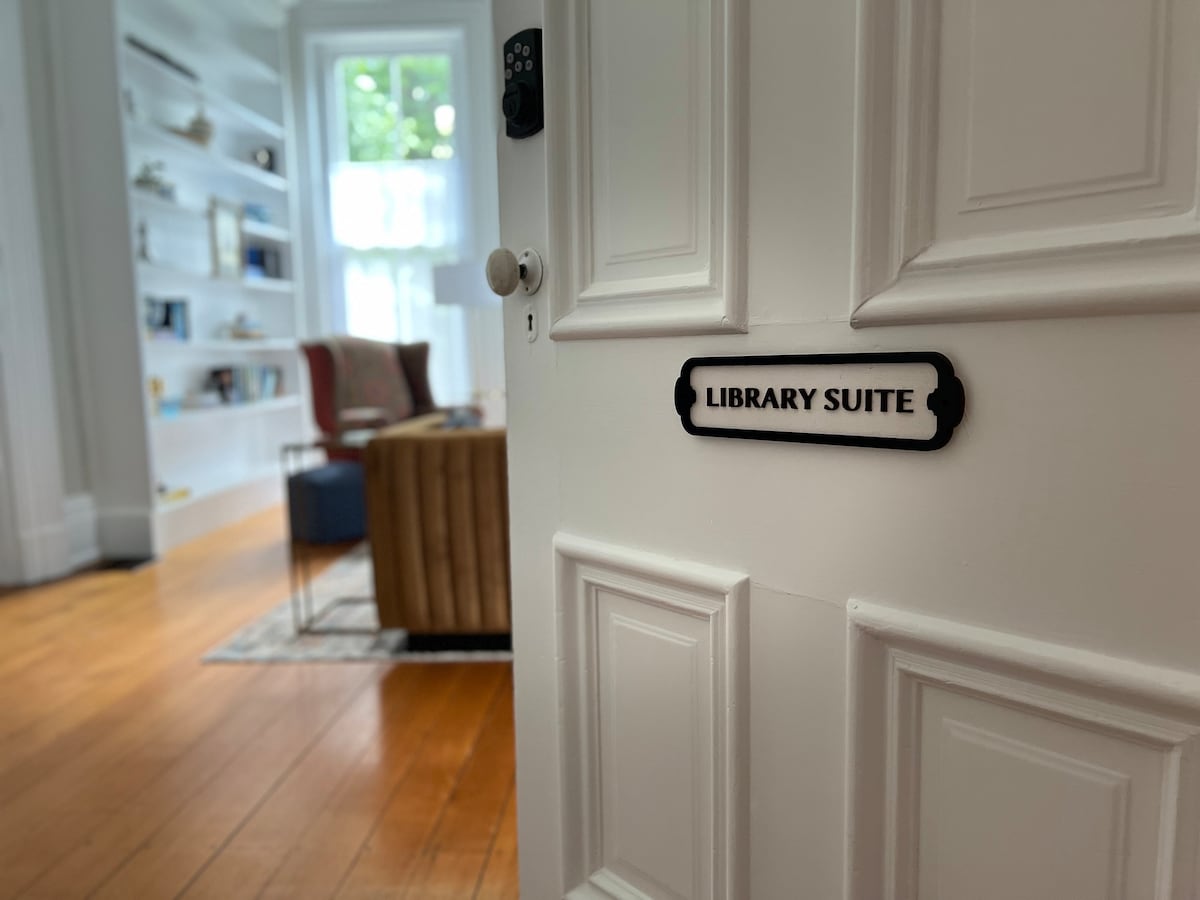 The Woodford Suite offers a king bed, a full bed, a dresser, a table and chairs, as well as a kitchenette containing a mini-fridge and microwave. Enjoy a newly-renovated, bathroom with Carrera marble tile and chrome finishes. The amenities include a coffee and snack bar, a smart television with fast-paced WIFI, a rain shower, & Beekman bath products. This suite accessible from the Inn's side entrance. This is a 2nd story suite and guests must be able to use the stairs. Breakfast is included.