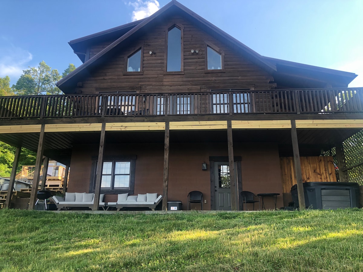 A rustic guest suite in the lower level of a log home. This open floor design features live edge tables, a large, 75” screen tv with internet based channels, great wifi & an amazing view of the mountains & sunrises right outside your door! Your private deck has comfortable seating & a hot tub provided for your comfort. A grill & fire pit along with charcoal & wood is provided! *hosts live upstairs-we will honor quiet hours of 11pm-7am.