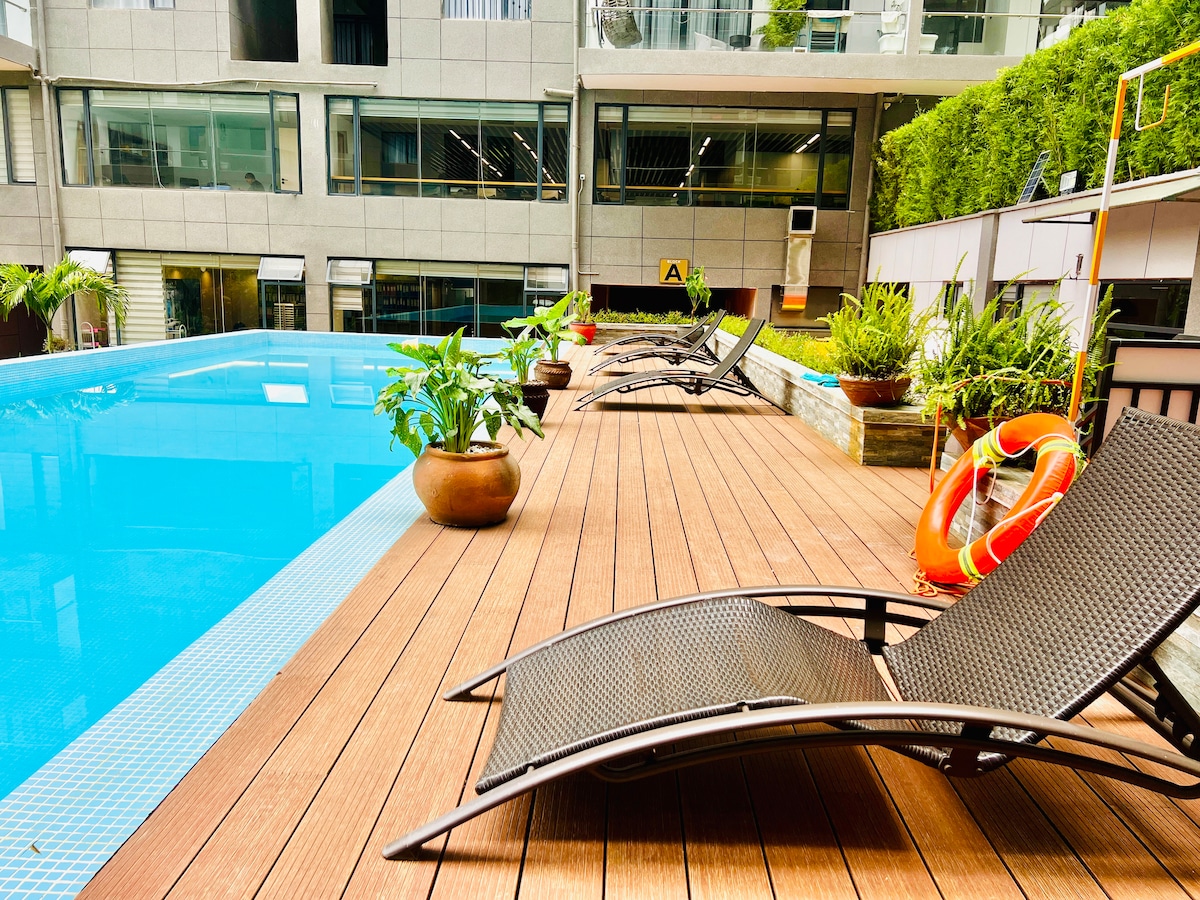 时尚的1卧公寓,带泳池、健身房、停车场和无线网络