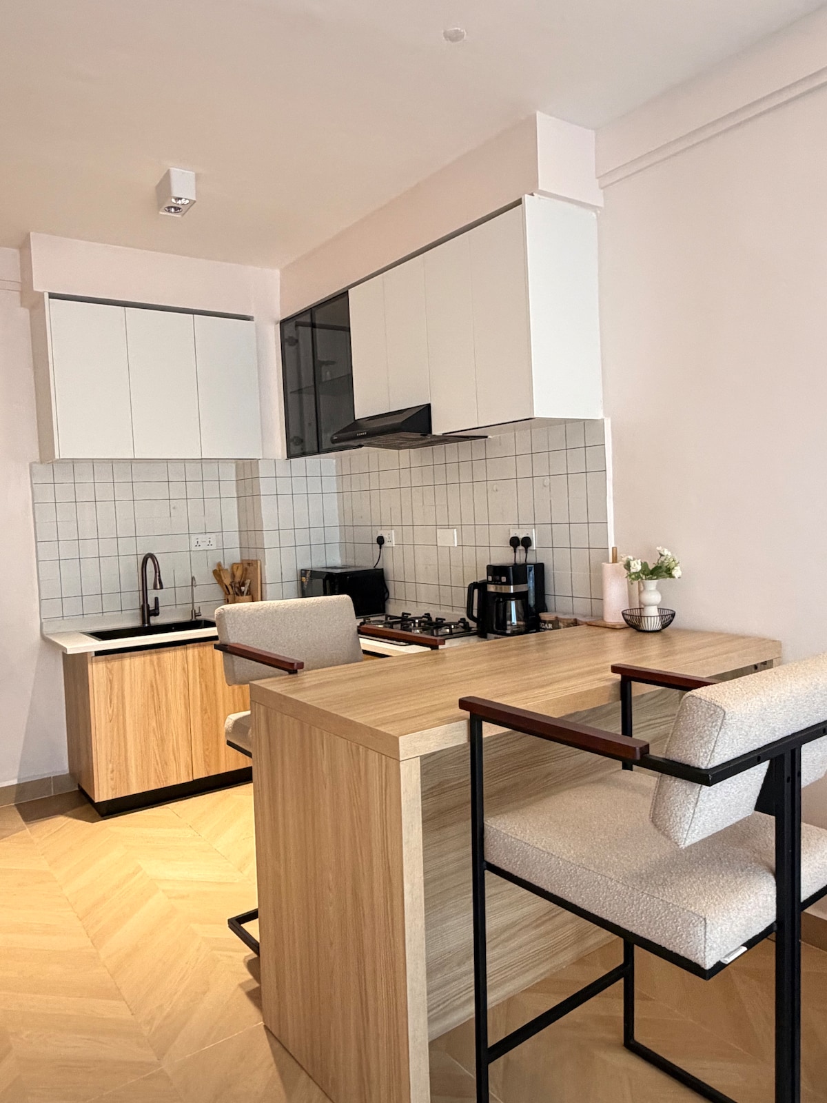 Enjoy a stylish experience at this centrally-located place in Westlands! NEW, Well appointed, UN-approved, modern, 1 BR apartment. Walk to everything: Hotels, Westgate & Sarit malls, forex bureaus, offices, Banks, GTC complex, Broadwalk Mall, restaurants, etc. Our apt is designed for luxury in a private, secure, centrally located serviced flat with world class amenities: Balcony, pool, well equipped gym and BBQ area. Perfect for business, leisure, singles, couples who seek a stylish, secure stay