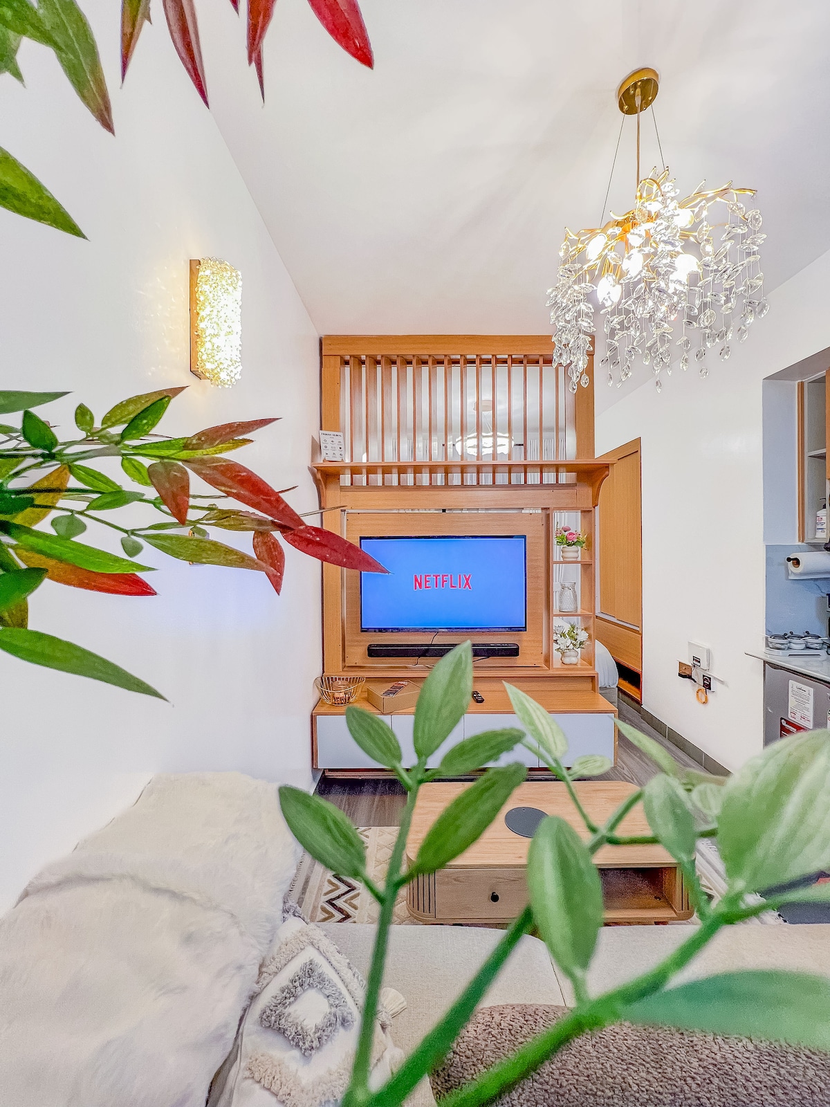 Opting for clean and uncluttered energy, you’ll find this apartment unit equipped for the most discerning guests. The living space displays minimalism with a tone style to complement contemporary decor with a hint of Japanese Wabi Sabi style. Colors are serene and neutral and comfort is the standard. Wall-to-wall glass facade windows flood the space with natural light (and warmth). Looking to take a siesta? Note : Gym and Pool is paid for guests that stay +30 days
