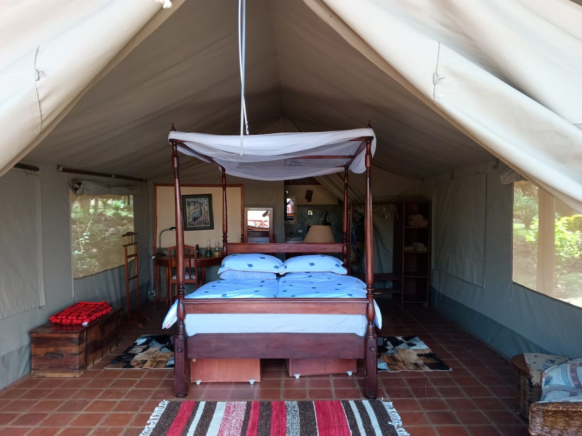 Enjoy the healing seclusion of this luxury safari tent nestled privately in a forest of indigenous trees. Treat your body and soul to supreme relaxation in the sunken outdoor bath tub with sweeping views of the Malewa River. Release tension as you enjoy the magnificent sunset and unpolluted night skies. Immerse yourself in the beauty of land, sky and water, basking in the pure air and unmatched sunlight of the equatorial highlands. Glamping at its absolute finest!