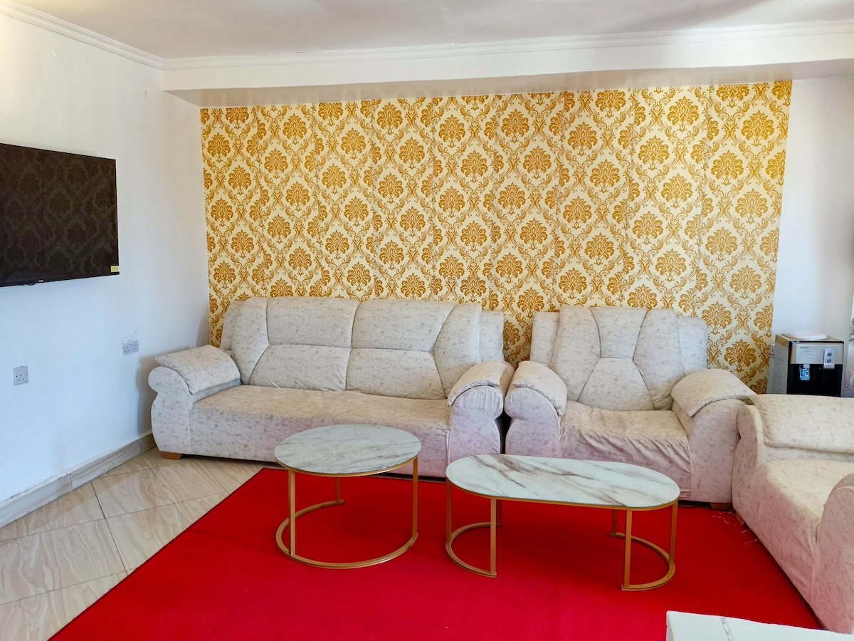 ✔A 4 Bedroom Spacious modern fully furnished Townhouse. ✔Gated community, perimeter wall, paved driveways. ✔24hr security. ✔Free parking for two ✔ High speed internet ✔High end furnishings ✔King Size bed ✔Fully fitted kitchen: Fridge/Freezer, Microwave, Toaster and Tableware ✔An office space ✔Washing machine ✔24/7 security with security cameras ✔35 Minutes drive from Jomo Kenyatta International Airport. ✔Near various social amenities i.e. KFC, Naivas , Green spot gardens, Gravity Amusement Park