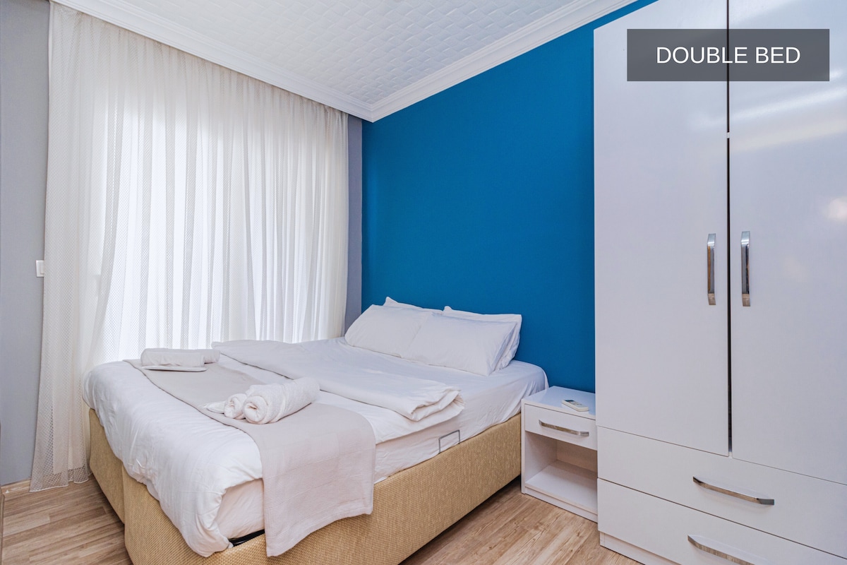 It is very close to the Airport, Bus Station, Public Transportation and Tram in Antalya Center. It is only 2 KM away from the world-famous Konyaalti Beaches. Apart: Consists of 2 Bedrooms + Kitchenette and Private Bathroom. Each room has 1 single bed. There is no lounge. Erasta Shopping Mall: 1 KM - 2 Min Weaving Park: 1 KM - 2 Min Tram: 1 KM - 2 Min Konyaalti Beaches: 2 KM - 5 Min Cliffs: 6 KM - 8 Min Bus Terminal: 7 KM - 10 Min Kaleiçi: 12 KM - 13 Min Airport : 18 KM - 20 Min