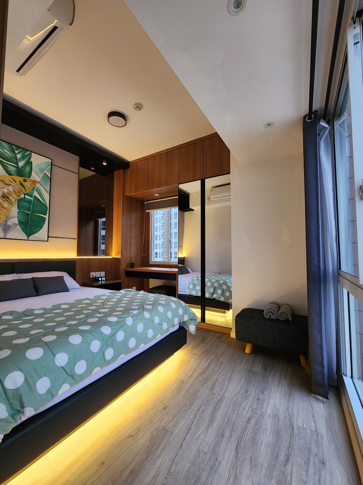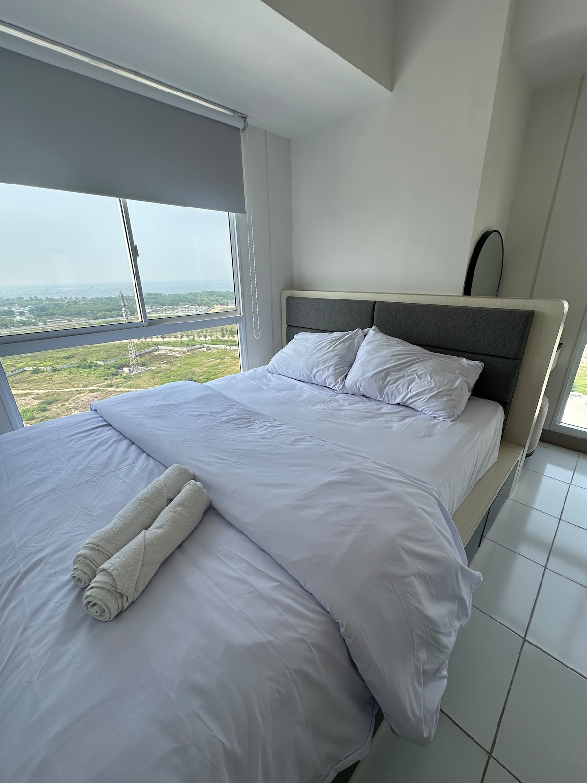 Experience a cozy minimalist escape at Tokyo Riverside PIK 2, where modern design meets comfort. Perfect for solo travelers or couples, this stylish studio offers a queen bed, kitchen, smart TV, and Wi-Fi — ideal for work or rest. Just a 1-minute walk to an open-air mall, supermarket, and 90+ cafés and restaurants, with Aloha Pantai Pasir Putih, Pantjoran PIK, NICE PIK 2, and more nearby. Clean, comfy, and convenient — your perfect stay near the airport.