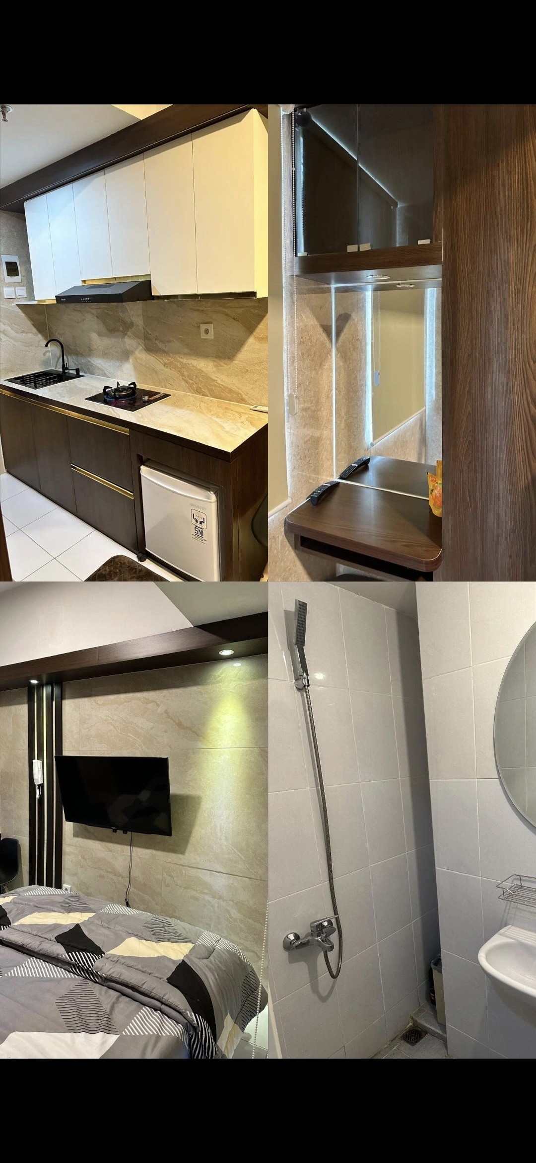Located in the heart of PIK 2, The Nook Studio Apartment is thoughtfully designed for a comfortable and convenient stay that accommodates up to 3 guests. Directly connected to Tokyo Hub mall and supermarket, with 100+ dining options. Just minutes away from PIK 2’s fave destinations. Room Amenities : • Kitchen & dining set • Electric pan, kettle & oven • Hot shower • Fresh towels & hairdryer • Bath essentials • Home theater YouTube, Netflix • Complimentary mineral water & snacks • Coffee & tea
