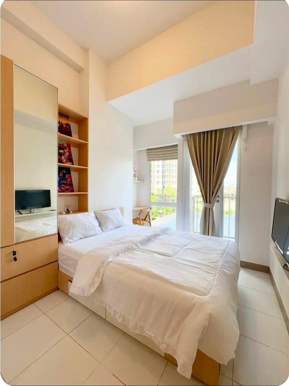 📍Apartment Tokyo PIK 2 We accept longer stay (monthly/yearly) at a special rate, inquiry with us! Only need 1 min walk away, you can reach an outdoor mall, supermarket, over 90 restaurants and shops under the apartment. Our location is also close to Angke Restaurant, Aloha Pantai Pasir Putih, Superhiro Japanese Superstore, Orange Groves PIK, Pantjoran PIK, By The Sea, PIK 1. 🚫Pets aren’t allowed in this building. -Studio Room -Netflix with 32 inch TV -Working table -High Speed Inet