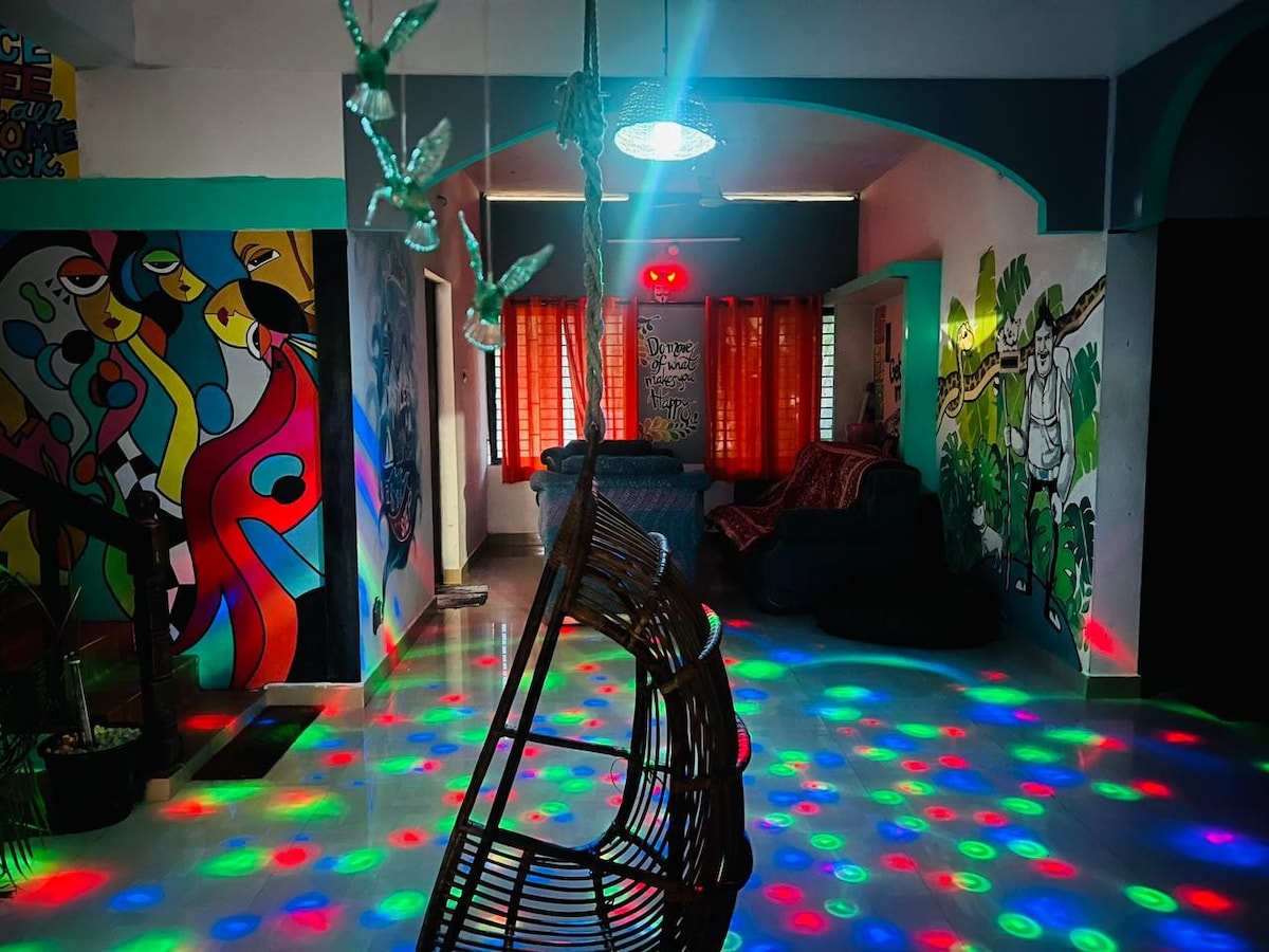 "Sea View" 001 is a 2 storey beach house located in Thalikulam, on the outskirts of Thrissur city, Kerala. Only (25 mins drive from Thrissur railway station & KSRTC Bus stand). This listing is for lower level. Upper level available at additional cost . Thalikulam is a costal village filled with coconut palm groves, paddy fields and a 3km stretch of beautiful sun kissed sea: Book the Lower level, Upper Level or the entire Home to stay. The price mentioned is for lower level only.