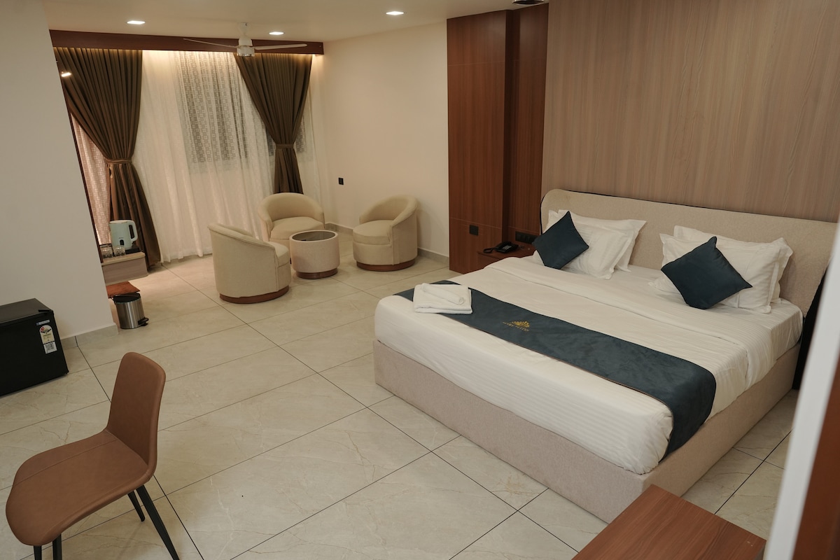 Our luxury rooms offer a sophisticated and indulgent experience. We offer spacious rooms featuring exquisite furnishing, premium bedding, quality amenities where you can rest or can work easily from the room. Don't forget that we are pet friendly. Every pet at our property is our valuable customer. (Complimentary buffet breakfast is included).