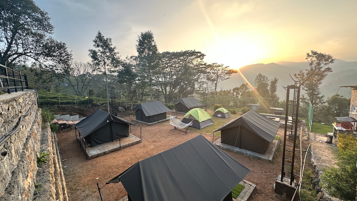 Relax in the comfort of luxury Bell Tent stay with amazing view of Plantations near Munnar. Located in beautiful mountain valley spread across 3.5 acres of land with lots of trees & greenery away from crowd & city. Best place for couples & family. Stay in our Bell Tent for the ultimate Glamping Experience done in style at this tranquil getaway. WHY CHOOSE BELL TENT STAY Luxury glamping at its finest Private Sitting Area Private Pool Private BBQ Area Private Camp fire Area