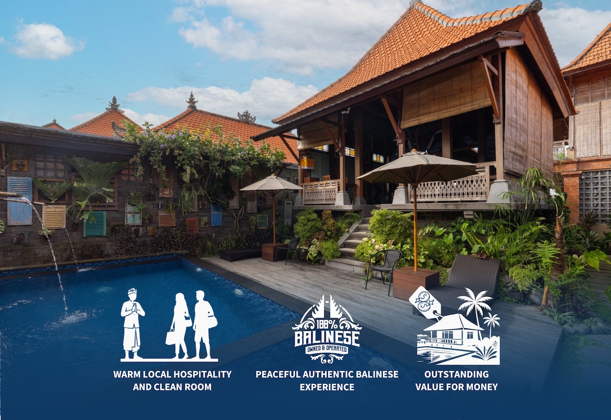Our spacious and comfortable rooms have a queen-sized bed and provide hot and cold shower,wifi access and ceiling fan. Breakfast is included. We are located just 700m away from Monkey Forest and a 10 minute walk away from Ubud center. Im also provide taxi service for pick up,drop off,day trips around Ubud: Rice terrace Holy water temple Coffee plantation Waterfall Elephant cave temple Sunrise trekking Water rafting Cycling tour Cooking class Etc Please asking me for more information:)