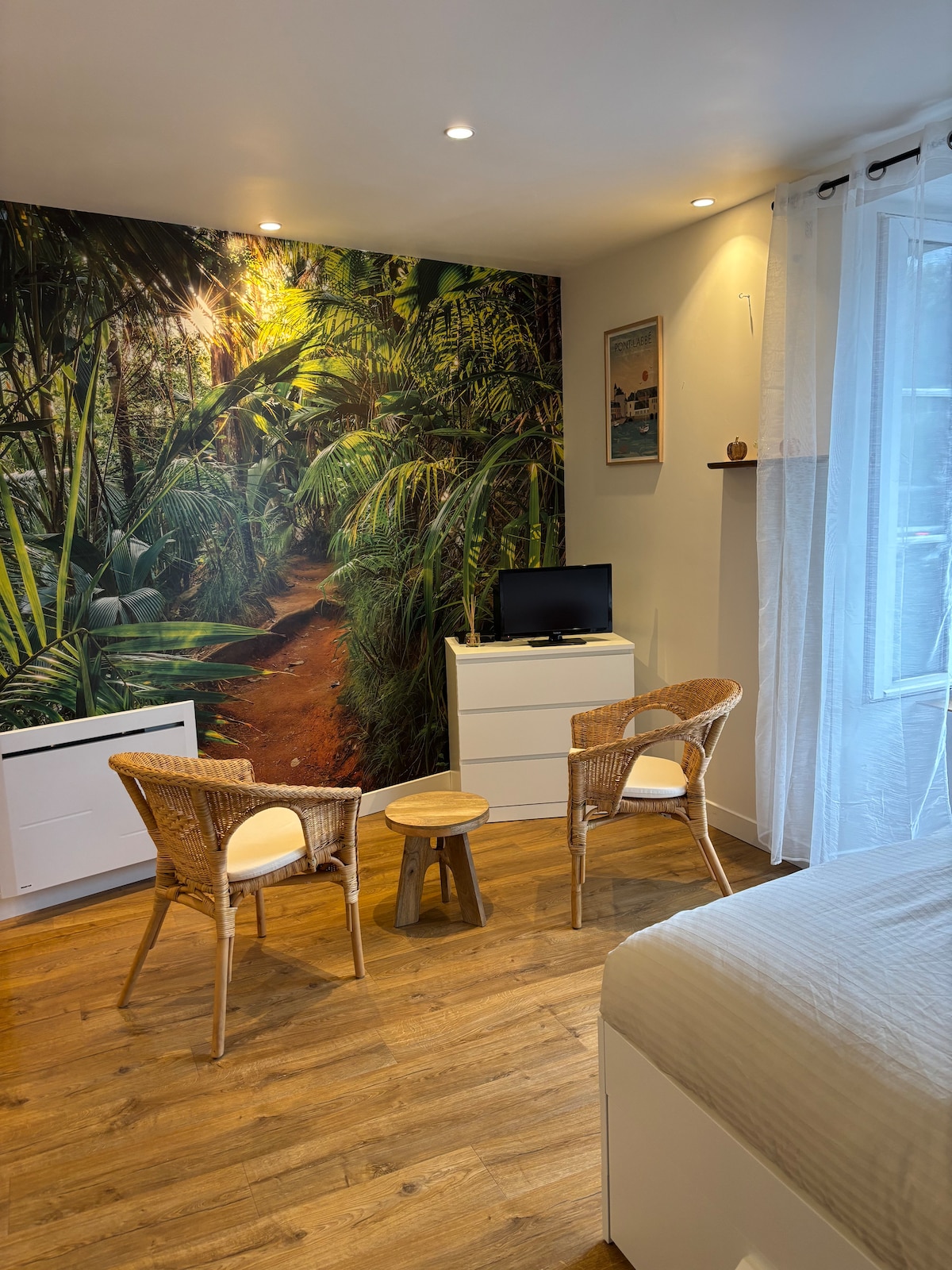 Superbe appartement en plein cœur du centre historique de Pont l’Abbé. Entièrement rénové avec goût, l’appartement vous offre un salon équipé d’un canapé-lit, un coin télé, une cuisine équipée, un petit coin repas, une salle de bain, une chambre avec un accès à une grande terrasse donnant sur l’église du sacré cœur sans aucun vis à vis. L’appartement est situé en plein centre, à 2 pas de la rivière et du château. Une perle rare au cœur du pays bigouden.