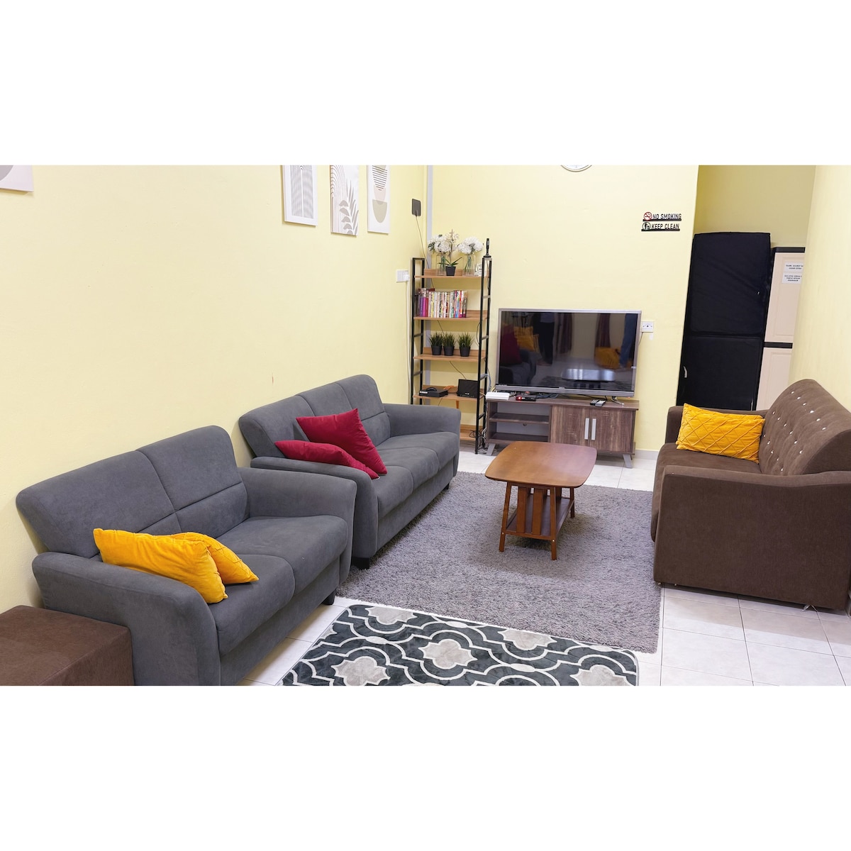 🚗 2 Gated Parking ❄️ Aircond (Ruang tamu, bilik 1, bilik 3) 🛌 Bilik 1 Katil King with bathroom 🛌 Bilik 2 Katil Queen 🛌 Bilik 3 Katil Queen 📌 Extra toto 1 unit 📌 Iron & iron board 🛁 2 bilik air (towel, shampoo, body wash) 🍽️ Meja makan 6 pax 👨🏻🍳 Perkakas dapur basic (kuali,senduk,etc) 🥛 Coway water filter ☃️ Peti ais 2 Pintu 📺 Flat screen TV with Astro Njoi 🛋️ 3 Seater Sofa 🔓 Self check-in (lockbox) 🚭 NO SMOKING 🚫 NO ALCOHOL 🚫 NO DRUG 🚫 NO PARTY