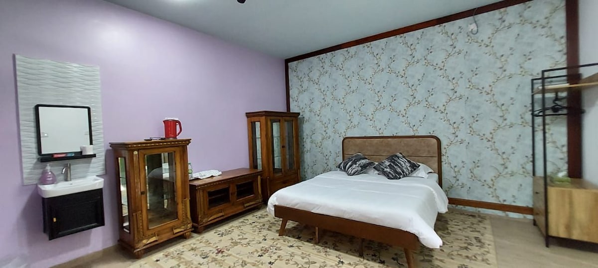The whole group will be comfortable with spacious and unique 3 bed cottage -3 Queen bed -3 bathroom (2 is attached in room) -1 sofa bed -air conditioner -water heater -kitchen -living room -spacious area -double story -next to swimming pool -near outside dining area -mini fridge -water dispenser -spacious outside area for event -inside private parking -extra bed (rent at rm30/day) -bbq pit(rent at rm50/day only) -eatery space (rent at rm300/day)