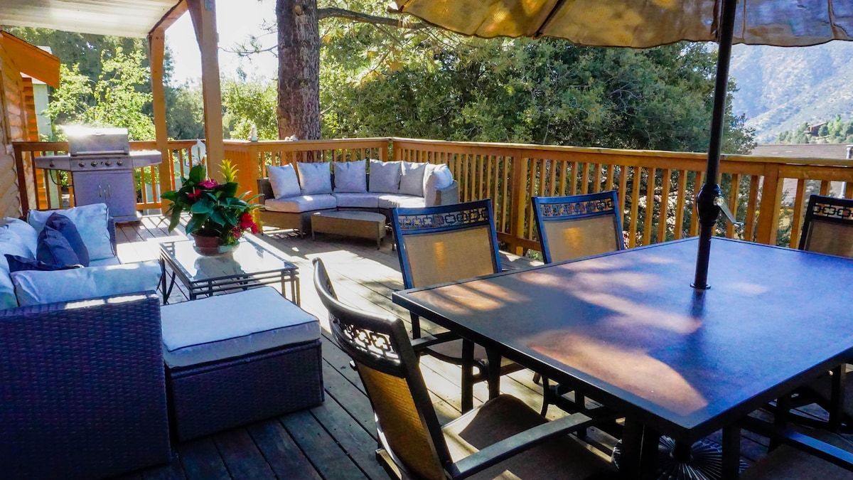 This stylish California log cabin is the perfect spot to relax alone or gather with family. Floor to ceiling windows capture the raw beauty of Pine Mountain Club's natural setting . Dine under the stars, enjoy the FRESH mountain air, enjoy the views. Eat out locally or bbq on one of your outdoor decks while basking in the mountain ambiance. Only one hour away from Los Angeles!