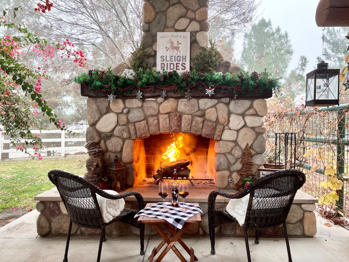 Our holiday decor has arrived! Located 17 miles north of Bakersfield, this is the perfect destination to unwind and get away from the hustle and bustle of city life. Get a feel for tranquil countryside living while enjoying plenty of outdoor space. Enjoy amazing views of the sunrise AND sunset, a game of corn hole, or a peaceful walk along the rolling hills. Our covered patio enables guests to relax in the shade on those hot days of summer and enjoy the outdoor fireplace on cool winter evening