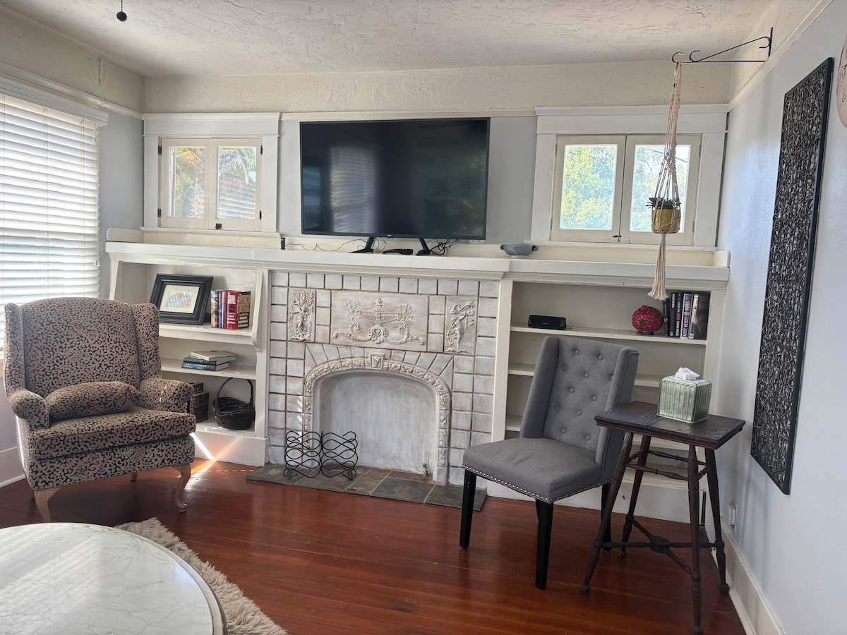 Enjoy tranquility in this serene neighborhood just 10 minutes from downtown with easy freeway access. Lots of shopping & eats are within a few minutes' drive. This 2 story back house is on a 1/2 acre, with a saltwater pool, kids swing set & fire pit. FREE WIFI, fully furnished kitchen, full bath, laundry rm, living rm with 60" smart tv, a single extra large 600ft² upstairs bedroom with a 55" smart tv. Bedroom has 2 queen beds w/ memory foam tops. Living rm has a pull out queen bed. No parties.