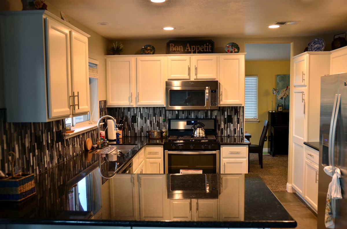 810 SQ FT+garage access. Enjoy Privacy! Great spot to accomplish your work! Located near downtown Exeter: close to markets, restaurants and Downtown shops. 10 min to Visalia, 15 min to Kaweah Delta Hospital, 20 min drive to Kaweah Lake, 35 min to beautiful Sequoia Park. Plenty of privacy with separate entrance and access to shared areas. Amenities: private bath, private kitchen& BR, dineArea. washer/dryer & access to some gym equipment. sleeps 3 adults comfortably. Please email any concerns.