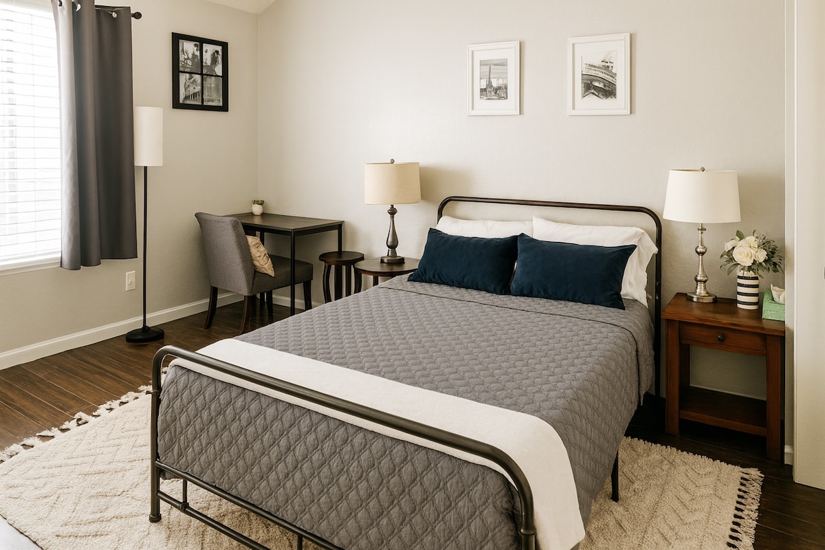 Welcome to Lily’s Retreat Home — a peaceful and centrally located condo designed for comfort and convenience. Tucked behind commercial buildings in a quiet, tree-lined neighborhood, it offers quick access to shops, eateries, and major freeways. Thoughtful hospitality ensures a comfortable stay offering a spacious suite, in-unit laundry, a fully equipped kitchen, and thoughtful amenities. It’s ideal for work trips, relocations or medical rotations. You'll really love the place!