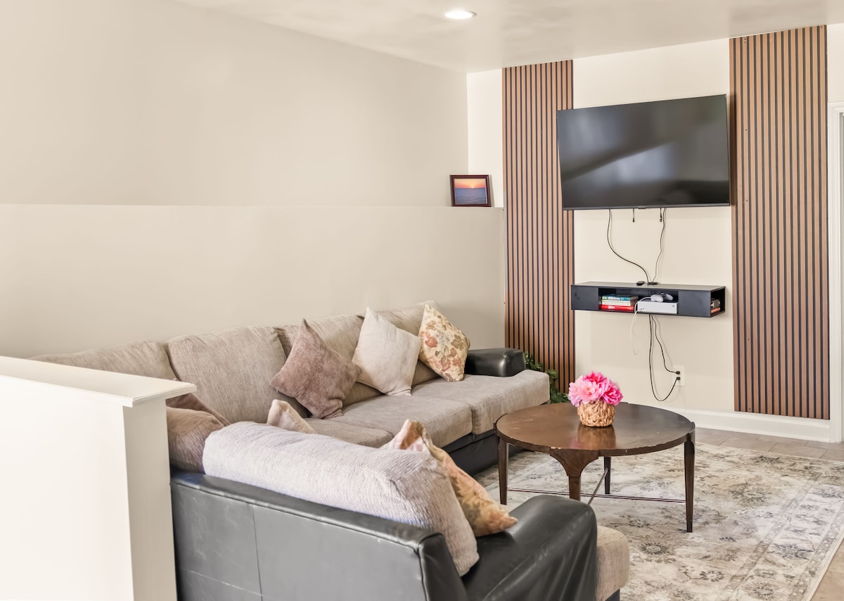 Fully furnished 2BR, 1BA completely private basement unit featuring a cozy living area, game room with pool table, darts, and Xbox, plus a backyard firepit. Includes 2 dedicated parking spaces. Amenities: Smart TV & Netflix Coffee machine, microwave, sandwich maker & air fryer Mini fridge, music system, iron & ironing board Disposable plates and cups Note: Please note that this unit does not include a kitchen, and the swimming pool on the property is not available for guest use.