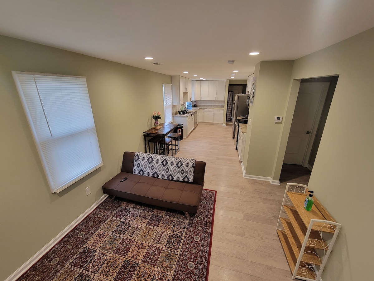 Location, Location! A completely renovated apartment in the highly desirable center Winchester. You’ll still be able to see some of its original character throughout this historic building. The apartment has a fully stocked custom kitchen with reclaimed wood and quartz counters, coffee nook with Keurig, large tile shower with glass doors, hardwood floors, queen memory foam mattress, high speed Wi-Fi, 50’ smart TV, Xfinity HDTV with voice remote control, AC/Heat, Washer/Dryer, and dishwasher.