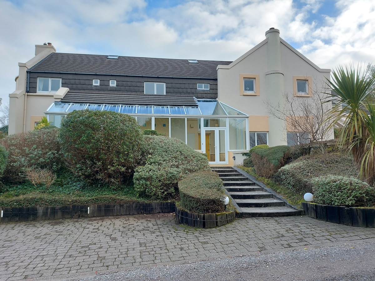As seen in THE IRISH ROAD TRIP.COM SWANKY AIRBNBS W SWIMMING POOLS Coach house on the ring of Kerry and the Wild Atlantic Way set in 10 acres of woodlands and tropical gardens .We are a private garden estate overlooking the Kenmare bay connected to miles of walk ways through woodland ,meadow , and tropical gardens . The Coach House is spacious and very comfortable 2 bed rooms with en suite , Kitchen and large sitting room with flat screen tv and wood burning stove .