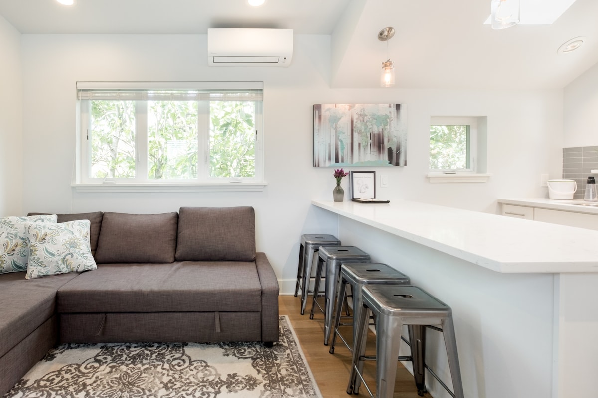 Built in 2021, this 1 bedroom (2 beds) light-filled home is in the heart of Seattle's vibrant Fremont neighborhood and is a perfect getaway for solo travelers, couples, or business travelers seeking comfort and convenience. Located in a quiet neighborhood, it's close to Woodland Park Zoo, Sunday Ballard Farmer's Market, Wallingford, and an easy drive to Downtown Seattle. Complete with Smart TVs, a fully equipped kitchen, washer/dryer, large shower with seat, and heated bathroom floors.